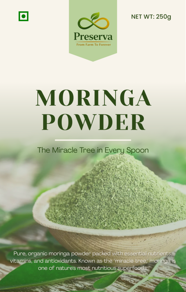 Pure, organic moringa powder packed with essential nutrients, vitamins, and antioxidants.