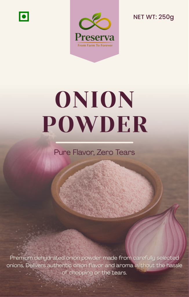 Premium dehydrated onion powder made from carefully selected onions. Delivers authentic onion flavour and aroma without the hassle of chopping or the tears