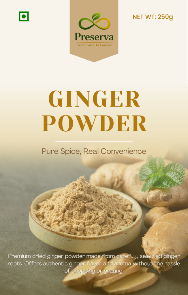 Premium dried ginger powder made from carefully selected ginger roots. Offers authentic ginger flavor and aroma without the hassle of chopping or grating